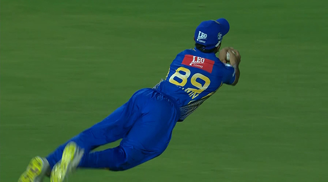 এমনিতে ডাইভ মেরে ক্যাচ ধরার দৃশ্য এখন সচরাচরই দেখা মেলে। কিন্তু উল্টো দিক থেকে এমন ডাইভ দিয়ে সফল হওয়ার দৃশ্য তেমন একটা চোখে পড়ে না। কিন্তু মুরুগান অশ্বিন প্রথমে বলের উপরে চোখ রেখে রানিং নিয়েছেন উল্টো দিকে।