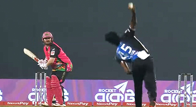 সিলেট স্ট্রাইকার্সের বিপক্ষে নিজের প্রথম ওভারেই গতিতে চোখ ছানাবড়া করেছেন নাহিদ। রাউন্ড দ্য উইকেট থেকে ভেতরের দিকে অ্যাঙ্গেল করা লেন্থ বল, শুধু অফ স্ট্যাম্পেই আঘাত করল। চোখের পলকে কয়েক হাত দূরে গিয়ে পড়ল সেই স্ট্যাম্প।