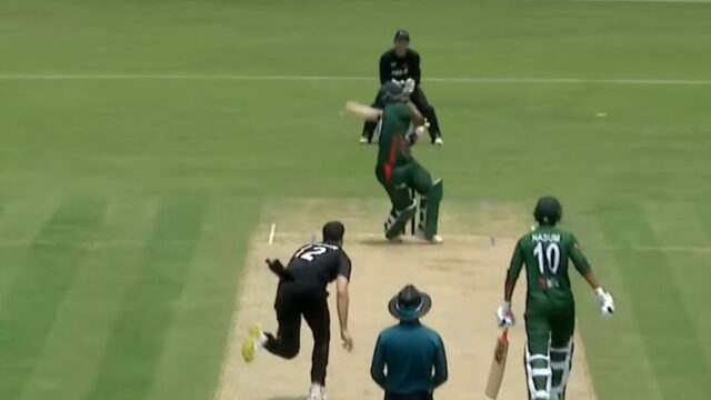 নিউজিল্যান্ডের বিপক্ষে ব্যাটিং বিপর্যয় বাংলাদেশের। তবে ধুঁকতে থাকা ব্যাটিং অর্ডারে ঢাল হয়ে দাঁড়ালেন নাসুম আহমেদ। অন্যদের ব্যর্থতার দিনে এবাদতকে সঙ্গে নিয়ে লাস্ট উইকেটে করলেন ৪৭ রানের পার্টনারশিপ। যা বাংলাদেশকে দিলো লড়াই করার পুঁজি।