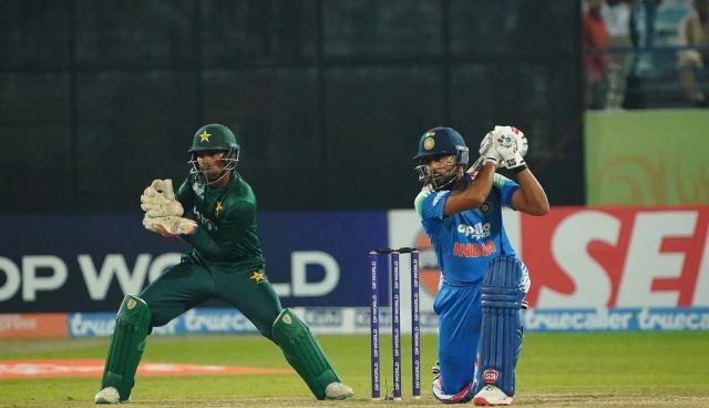 আজ অবশ্য অতটা ধংসাত্মক মেজাজে ব্যাট না চালালেও পাকিস্তানের গলার কাটা ছিলেন তখনও। শেষটাতে অবশ্য ৪৫ রান করে সুফিয়ান মুকিমের শিকার হয়ে সাজঘরে ফিরতে হয় সুরিয়াভানশিকে। তবে সাথে নিয়ে যান দলের ভাগ্যকেও। শাহিনসের বোলিং আক্রমণ সামলাতে না পেরে তাসের ঘরের মতো ভেঙে পড়ে ভারত। গুটিয়ে যায় মাত্র ১৩৬ রানে।