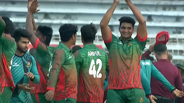 টপ অর্ডারে ওপেনার মাহফিজুল ইসলাম রবিন ৮৯ বলে ৮৭ রান করে। তবে, তাঁর এই ব্যাটিং বৃথা যাচ্ছিল বাকিদের জন্য। প্রিতম কুমার, আরিফুল ইসলাম কিংবা আহরার আমিনরা রান রেটের সাথে পাল্লা দিতে ব্যর্থ হন। শেষের দিকে রাকিব-তোফায়েলের জুটিটা না হলে কার্যত জিততেই পারে না বাংলাদেশ।