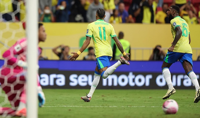 পেরুর বিপক্ষে জোড়া গোল করলেন পেনাল্টি থেকে। পেরুর বিপক্ষে ৪-০ গোলে জিতে যায় ব্রাজিল দল। বার্সেলোনার পর এবার ব্রাজিল দলেও নেতা বনে যাচ্ছেন রাফিনহা।