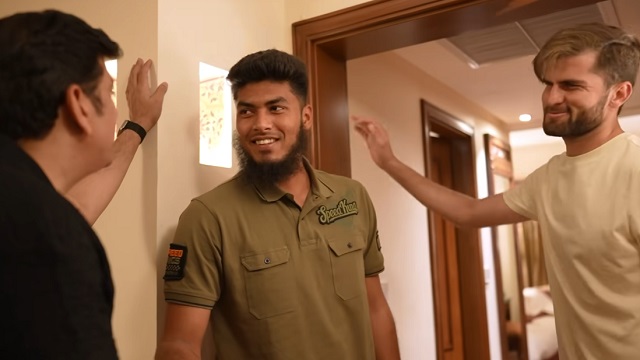 রিশাদ হোসেন নিশ্চয়ই এই রাতটা মনে রাখবেন অনেকদিন। টিম হোটেলের দরজা খুলেই চোখের সামনে দেখলেন দাঁড়িয়ে আছেন শাহীন শাহ আফ্রিদি। সাথে সিকান্দার রাজা, লম্বা একটা সালাম দিয়ে পরিস্কার বাংলায় জিজ্ঞেস করলেন, ‘কেমন আছো? ভাল?’