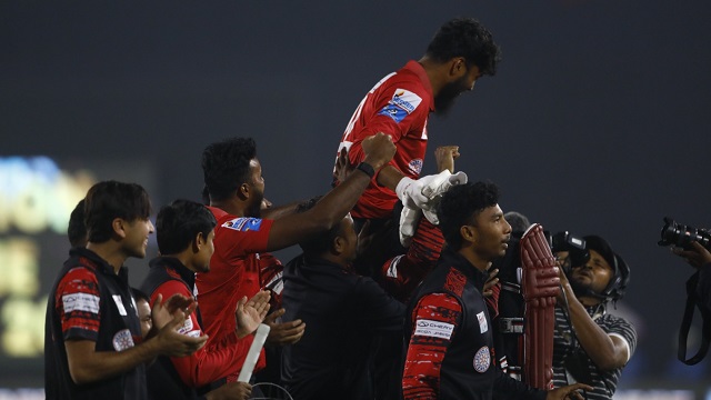 মাহমুদউল্লাহ রিয়াদের যে কাজটা করার দরকার ছিল সেই কাজটা করে দিলেন রিশাদ হোসেন। পর পর দুই ওভার তাঁর দুই ছক্কায় ফরচুন বরিশালের নাম দ্বিতীয়বারের মত লেখা হয়ে গেল বিপিএলের শিরোপায়।