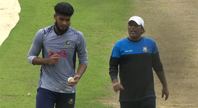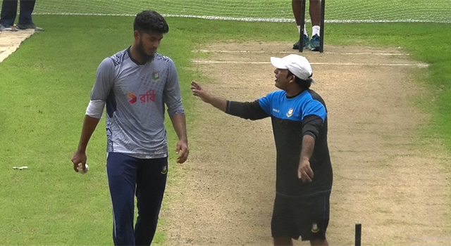 তাই বলে নিশ্চয়ই হাতের উপর হাত রেখে বসে থাকা মানায় না তার। সেজন্য মিরপুর একাডেমি মাঠে হাজির হয়েছেন রিশাদ। সেখানে দীর্ঘক্ষণ অনুশীলন করেছেন। তার বোলিংয়ের খুঁটিনাটি ভুলগুলো শুধরে দিয়েছেন শাহেদ মেহমুদ। এমনকি মোবাইলে ভিডিও ধারণ করেও দেখিয়েছেন রিশাদের ভুলগুলো।