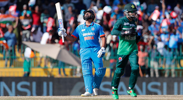 টসে জিতে আগে ভারতকে ব্যাটিংয়ের আমন্ত্রণ জানিয়েছিলেন বাবর আজম, ভেবেছিলেন হয়তো আগের বারের মত এবারও তান্ডব চালাবেন দুই পেসার শাহীন শাহ আফ্রিদি এবং নাসিম শাহ। তবে অন্য পরিকল্পনা ছিল ব্যাটারদের; প্রথম ওভারেই শাহীনকে ছয় হাঁকিয়ে সেই বার্তা দিয়েছিলেন অধিনায়ক রোহিত।