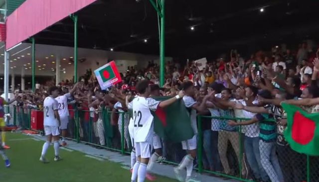 পুরো প্রথমার্ধজুড়ে বল দখলে রেখে একচেটিয়া আধিপত্য বিস্তার করলেও ফিনিশিংয়ের অভাবে জালের দেখা পায়নি বাংলাদেশ। গোলশূন্য ড্র নিয়ে বিরতিতে যায় দুই দল। তবে দ্বিতীয়ার্ধে মাঠে নেমেই খোলস ছেড়ে বেরিয়ে আসে যুবারা। ম্যাচের মোড় ঘুরিয়ে দেন দলে নতুন যোগ দেওয়া প্রবাসী ফুটবলার রোনান সুলিভান। তার সঙ্গে ইব্রাহিম নেওয়াজ, মোরশেদ আলীরা পুরো মাঠ দাপিয়ে বেড়িয়েছেন।