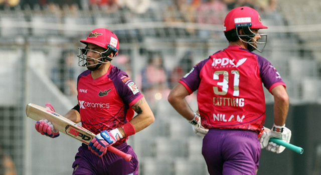 পাওয়ার প্লের মধ্যে তিন উইকেট হারানো দলকে টেনে তোলার সুযোগ ছিল নাজমুল শান্ত, জাকির হাসানদের সামনে। কিন্তু দুজনেই প্যাভিলিয়নের পথ ধরেন অল্প সময়ের ব্যবধানে। ৩৯ রানে পাঁচ উইকেট হারিয়ে দিশেহারা স্ট্রাইকার্স বাহিনীকে লজ্জা থেকে বাঁচান বেনি হাওয়েল আর বেন কাটিং। দুই পেস বোলিং অলরাউন্ডারের ৬৮ রানের জুটিতে কোন রকম দলীয় শতক পূর্ণ করে দলটি।