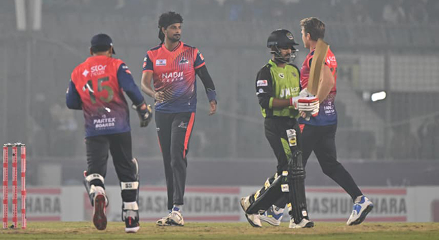 দুর্দমনীয় রাজশাহী ওয়ারিয়ার্স। জয়ের ধারা তাদের চলমান। তুলে নিয়েছে নিজেদের সপ্তম জয়। সিলেট টাইটান্সকে হারিয়ে টেবিলের শীর্ষস্থানে নিজেদের জায়গা পোক্ত করল নাজমুল হোসেন শান্তর দল। হাড্ডাহাড্ডি লড়াইয়ের ম্যাচে রাজশাহীর জয়ের ব্যবধান স্রেফ পাঁচ রান।
