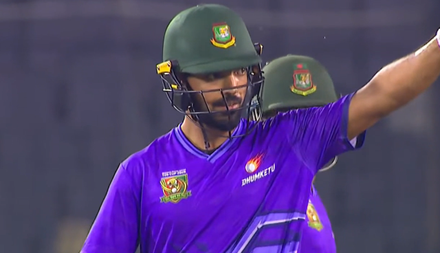 অদম্য গতিতে ব্যাট চালিয়ে গেলেন সাইফ হাসান। শেষটা যেখানে করেছিলেন, শুরুটা ঠিক সেখান থেকেই। বাংলাদেশ প্রিমিয়ার লিগে (বিপিএল) নিজের খেলা শেষ ম্যাচে বার্তা দিয়েছিলেন ফর্মে ফেরার, সেটারই বাস্তবায়ন ঘটালেন অদম্য বাংলাদেশ টি-টোয়েন্টি কাপে।