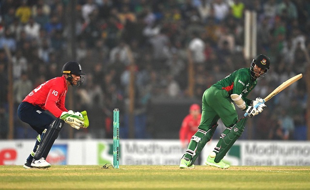 ইংল্যান্ডের দেওয়া ১৫৭ রানের লক্ষ্য বাংলাদেশের জন্য তাড়া করতে সহজ হয়েছে মূলত নাজমুল হোসেন শান্ত’র আক্রমণাত্বক ব্যাটিংয়ে। এ ম্যাচে শুরু থেকেই আগ্রাসী ভূমিকায় ব্যাট করতে দেখা যায় তাঁকে। মার্ক উডের এক ওভারে টানা চারটি চার মারেন তিনি। এরপর আক্রমণাত্বক ব্যাটিং এপ্রোচেই তুলে নেন নিজের ব্যক্তিগত অর্ধশতক। তাঁর ৩০ বলে ৫১ রানের ঝড়ো ইনিংসই ম্যাচের গতিপথ বদলে দেয়। তাই বাংলাদেশের এমন জয়ে ম্যাচসেরার পুরস্কারও উঠেছে এ বাঁ-হাতি ব্যাটারের হাতে।