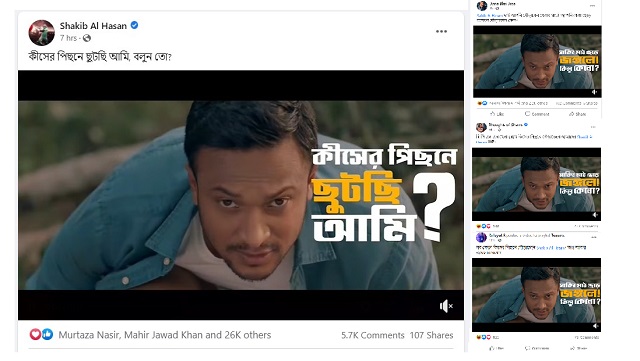 কয়েক সেকেন্ডের এই ভিডিও ক্লিপে দেখা যায় গহীন জঙ্গলে কিছু একটা ধরার জন্য ছুটছেন সাকিব। কীসের জন্য এবং কী পাওয়ার জন্য সাকিবের এই প্রাণপণ দৌড়, তাই নিয়েই আলোচনা এখন তুঙ্গে।