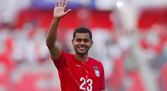 বেশ গুরুদায়িত্ব। তাকে দিতে হবে গোলের জোগান। সে কাজটা তিনি করেছেনও বেশ ক’বার। প্রায় চারজন ডিফেন্ডারদের মাঝখান থেকে তিনি বল বাড়িয়েছেন রাকিব হোসেনের উদ্দেশ্যে। তার আগে আবার কাটিয়েছেন দুইজন ডিফেন্ডারকে। কিন্তু শেষ পাসটা ঠিক হয়নি জেনেই জার্সিতে লুকিয়েছেন নিজের মুখ।