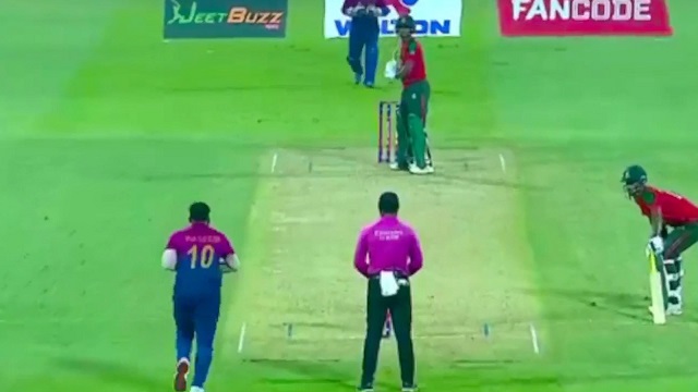 শেষ ওভারে যা যা নাটক সম্ভব তার সব কিছৃুই হল। বাংলাদেশের শেষ দুই ব্যাটার মিলে রান নিলেন ২৬ টা। বোলিং করলেন দু’জন ভিন্ন বোলার। মোহাম্মদ ওয়াসিম পাঁচ বলে দিলেন ২৩ রান। দু’টো বিমার মারলেন, ফলে শেষ বলটা করতে আসতে হল আলিশান শরাফুকে। সেখান থেকে আসল আরও তিনটি রান।