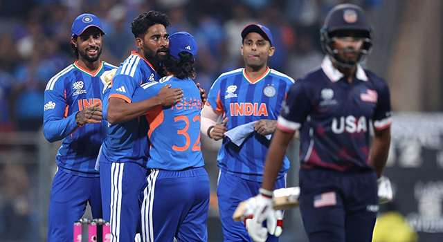১৬২ রানের লক্ষ্য ছুড়ে দিয়ে, ভারত থাকতে চেয়েছিল নির্ভার। সে জন্য অবশ্য শুরুতেই উইকেট তুলে নিতে হতো আমেরিকার। সেই কাজটাই করলেন মোহাম্মদ সিরাজ। সুইংয়ের মোহনীয় হেলদোলে তিনি নিজের প্রথম স্পেলেই তুলে নিলেন দু’খানা উইকেট। অ্যান্ড্রিস গাউসকে সিরাজ আটকে ফেলেন কাভারে। সহয়তার হাত বাড়িয়ে উইকেটটি তালুবন্দী করেন তিলক ভার্মা।