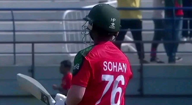 ২৪ বলে ৮৮ রান তুলে ফেলেছিলেন হাবিবুর রহমান সোহান। ছক্কার বন্যার সূত্রপাত ঘটে তারই ব্যাট থেকে। বাঁধ ভাঙা নদীর মত প্রবল স্রোতে রানের বন্যা বইয়ে দিয়েছেন সোহান। বাংলাদেশের ব্যাটারদের এতটা আক্রমণাত্মক সত্ত্বা রয়েছে- সে বিশ্বাস যেন কারোই হচ্ছিল না।