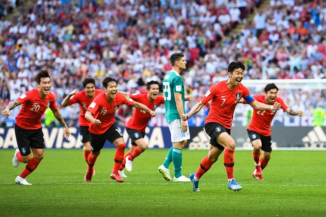 ২০১৪ বিশ্বকাপ শিরোপাধারী জার্মানি ২০১৮ বিশ্বকাপের প্রথম ম্যাচে ম্যাক্সিকোর বিরুদ্ধে হারলেও গ্রুপপর্বের শেষ ম্যাচে দক্ষিন কোরিয়ার বিরুদ্ধে ২-০ গোলের হার ছিলো বিশ্বকাপ ইতিহাসের অন্যতম বড় আপসেট। অতিরিক্ত সময়ে করা কিম ইয়ং গুন এবং সন হিউ মিন এর গোলে ১৯৩৮ সালের পর প্রথমবার গ্রুপপর্ব থেকেই বিদায় নেয় জার্মানি।