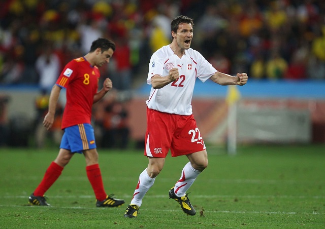 ২০০৮ ইউরো জয়ের পর ফেভারিট হিসেবেই দক্ষিন আফ্রিকা বিশ্বকাপে খেলতে এসেছিলো স্পেন। প্রথম ম্যাচে সুইজারল্যান্ডের বিপক্ষে গোলে ২২ টি শট নিয়েছিলো তারা যেখানে সুইসরা নিয়েছিলো ৬ টি শট। এমন আধিপত্যের পরেও গ্যালসন ফার্নান্দেজ এর দ্বিতীয়ার্ধের গোলে ১-০ গোলের জয় পায় সুইজারল্যান্ড। এই আপসেটকে পেছনে ফেলে সেই বিশ্বকাপের শিরোপা উঁচিয়ে ধরে স্প্যানিশরা।