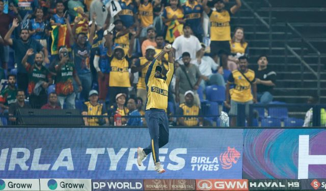 ১৩তম ওভারের প্রথম বলে ওয়েলালাগের বল লং অনের উপর দিয়ে মারতে উদ্দত হলেন। টাইমিংটা মন্দ হলো না তবে দুশমন্থ চামিরা যেন বাতাসে উড়েই বদলে দিলেন দৃশ্যপট। স্প্রিন্টারের মতো দৌড়ে এসে মাথার উপর দিয়ে ভেসে যাওয়া নিশ্চিত ছয়টাকে হাতের মুঠোয় নিয়ে নিলেন।