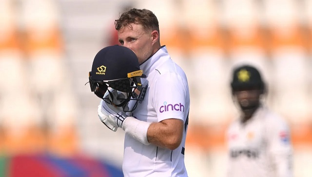 আমের জামেলের ডেলিভারি আলতো করে ড্রাইভ করলেন জো রুট, বল ছুটতে ছুটতে পেড়িয়ে গেল বাউন্ডারির সীমা। তাতেই রুট …