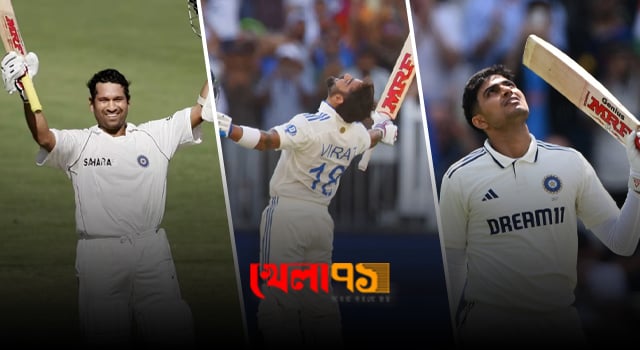 এমআরএফ স্টিকার লাগানো ব্যাট, চার নম্বর ব্যাটিং পজিশন, আর তিনটি নাম— শচীন, কোহলি এবং শুভমান গিল। যেন পৌরাণিক …