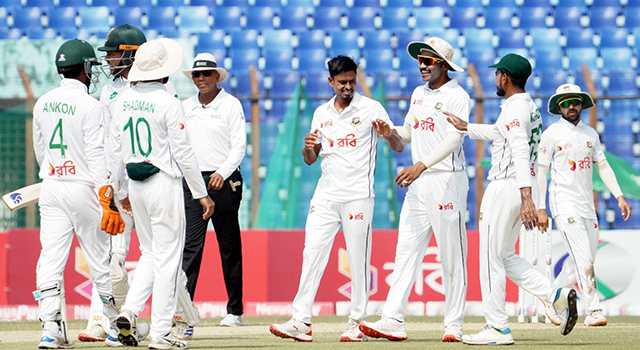 তাইজুলের পাওয়া অধিকাংশ উইকেটের দিকে একটু নজর দিলেই বিষয়টি স্পষ্ট হবে। এইডেন মার্করামও প্রথম দিন তার বলে শট খেলতে গিয়ে আউট হয়েছেন। ডেভিড বেডিংহামও মারমুখী ভঙ্গিমায় ব্যাট চালিয়ে যাচ্ছিলেন। ছক্কা হাঁকানোর পরবর্তী বলে উইকেট তুলে নিয়েছেন তাইজুল।