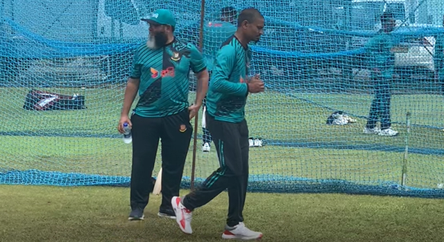 তাইজুল ইসলামের কাঁধে মুশতাক আহমেদের ভরসার হাত। দলের তিন স্পিনারকে নিয়ে গলে বেশ সিরিয়াস বাংলাদেশের স্পিন বোলিং কোচ। অনুশীলন শুরুর আগে বুঝিয়ে দিলেন তাদের ঠিক কি করতে হবে। আর তাইজুলকে একটু বাড়তি উপদেশও দিলেন তিনি। কেননা তাইজুলই তো এখন বাংলাদেশের স্পিন ডিপার্টমেন্টের অলিখিত সেনাপতি।