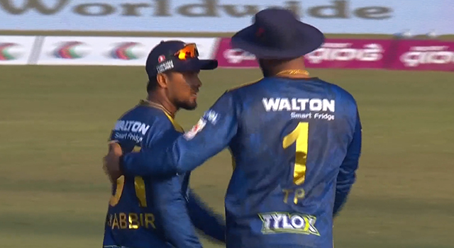এরপর বল না কুড়িয়ে সামনের দিকে ঠেলে দিয়ে অপেক্ষা করেন সাব্বির। যেন আরও একটি রান দৌড়ে নেওয়ার আমন্ত্রণ দিলেন তিনি। সেখানেই মেজাজ হারিয়ে ফেলেন তামিম।