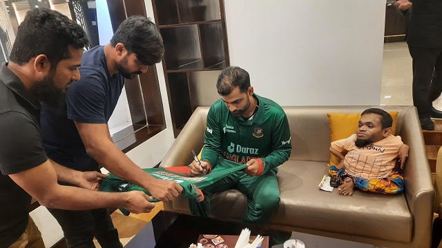 আয়ারল্যান্ডের বিপক্ষে সিরিজের আগে টিম হোটেলে শারীরিক প্রতিবন্ধী এই তরুণের সাথে সাক্ষাৎ করেন বাংলাদেশের অধিনায়ক। কেবল তামিম নন, এদিন মুশফিকুর রহিম, শাহরিয়ার নাফিস, নাফিস ইকবালরাও দেখা করেন শাহীনের সাথে।