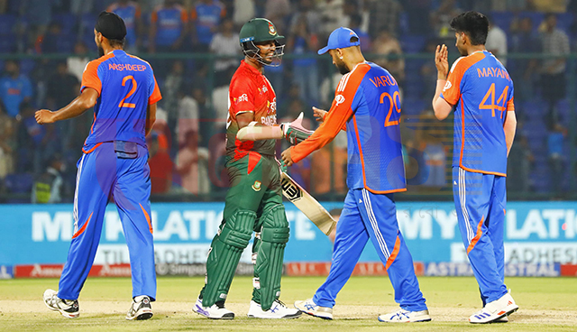 এছাড়া দুই ওভার করে হাত ঘুরিয়েছেন স্পিনার অভিষেক আর রিয়ান পরাগ। তাঁরাও নাম লিখিয়েছেন স্কোরবোর্ডে, যথাক্রমে তাওহীদ হৃদয় এবং মেহেদি হাসান মিরাজ প্যাভিলিয়নের পথ ধরেছেন তাঁদের দুজনের ডেলিভারিতে। আরেক অলরাউন্ডার ওয়াশিংটন সুন্দর এক ওভার বল করেই পেয়েছেন নাজমুল শান্তর উইকেট।