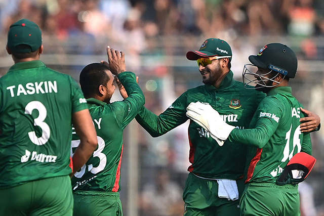 তবে তখনও বাংলাদেশের বোলারদের খানিকটা ভেল্কি দেখানো বাকি। আর সে ভেল্কিতেই তাসের ঘর ইংল্যান্ডের অভিজ্ঞ আর মারকুটে ব্যাটিং লাইনআপ। বাইশ গজটা যেন এক ফালি অগ্নিকুণ্ড। পা দেওয়া মাত্রই ভস্ম হয়েছেন ইংল্যান্ডের প্রতিটা ব্যাটার। শেষ অবধি খুব বড় লক্ষ্য গড়তে পারেনি জস বাটলারের দল।
