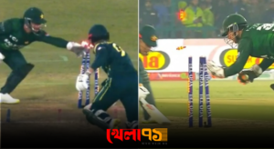 এরপর শুরু হলো খোঁজাখুঁজি। পুরো দল তখন ব্যস্ত হারিয়ে যাওয়া মেডেল খুঁজতে। আর এ দৃশ্য যেন এক মজার রহস্যগল্পের প্লট! শেষমেশ, থ্রোডাউন স্পেশালিস্ট নুয়ান সেনেভিরত্নের হাতেই পাওয়া গেল মেডেল। অক্ষর হেসে উঠে বললেন, ‘মেডেল বেরিয়ে এসেছে!’