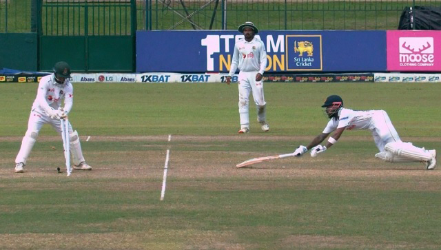 তাইজুল ইসলামের অফস্টাম্পের বাইরের শর্ট বলটিকে কভার অঞ্চলে ঠেলে দিয়েই কুশল চিৎকার দিয়ে বলেছিলেন — ‘দুই!’ ডিপ কভার থেকে এবাদত হোসেনের বজ্রগতির থ্রো উইকেটরক্ষক লিটন দাসের গ্লাভসে!