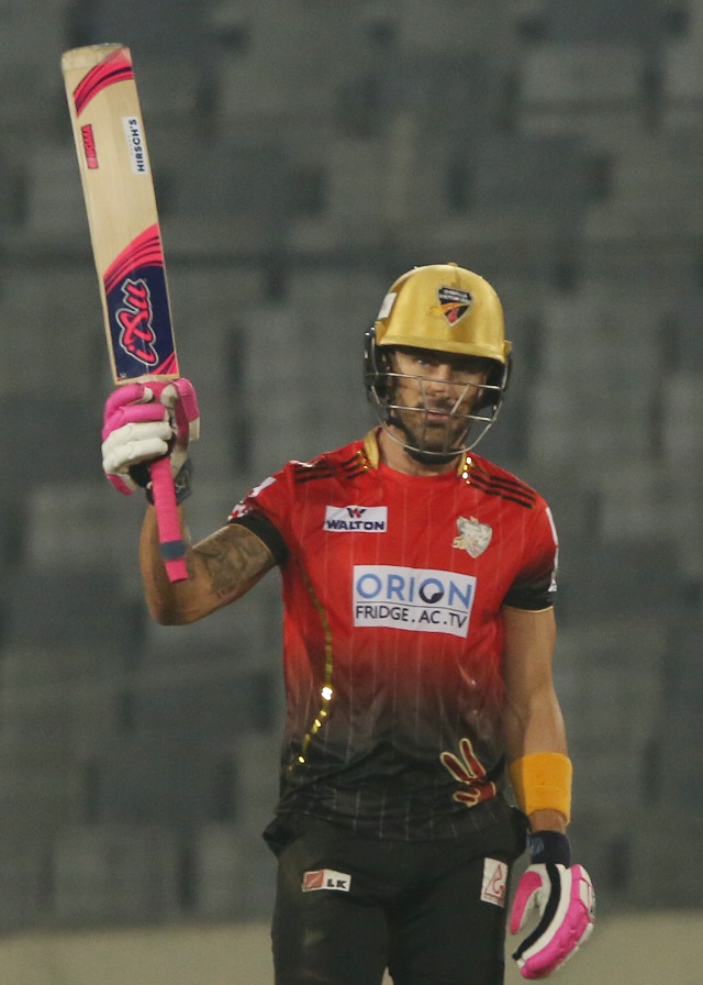 কিছুদিন আগে চট্টগ্রাম চ্যালেঞ্জার্সের বিপক্ষে ৮৩ রানের অপরাজিত একটি ইনিংস খেলেছিলেন। তবে কুমিল্লার দর্শকদের মনে নিশ্চিয়ই একটা আক্ষেপ ছিল। বিধ্বংসী এই ব্যাটসম্যানের সেঞ্চুরিটা দেখা হলো না যে। তবে সেই আক্ষেপ ফাফ ডু প্লেসস মেটালে মিরপুরে খুলনা টাইগার্সের বিপক্ষে। তাঁর ব্যাটিং ঝড়ে রীতমত উড়ে গেল খুলনার বোলিং লাইন আপ।