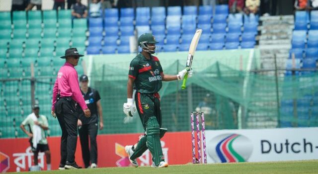 তখন দলের হাল ধরেন লিটন দাস আর নাজমুল হোসেন শান্ত। লিটন ৯১ বলে ৭৬ রান করে ফিরলে ভাঙে ১৬০ রানের জুটি। কিন্তু, অন্য প্রান্তে শান্তকে থেমে যাননি। তুলে নেন নিজের চতুর্থ সেঞ্চুরি। শেষে তাওহিদ হৃদয় আর অধিনায়ক মেহেদী হাসান মিরাজের দুই ছোট তবে গুরুত্বপূর্ণ ইনিংসে ভর করে বাংলাদেশ থামে ২৬৫ রান করে।