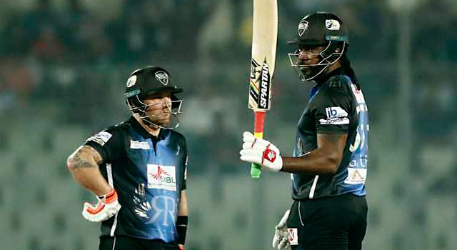 ঢাকা ডায়নামাইটেসের বিপক্ষে ৬৯ বলে ১৪৬ রানে নট আউট ছিলেন ক্রিস গেইল। ব্রেন্ডন ম্যাককালাম বেশ ধীরলয়ে ৪৩ বলে ৫১ রান নিয়ে সঙ্গ দিয়ে গিয়েছিলেন। দ্বিতীয় উইকেটে সেটিই এখন অবধি সর্বোচ্চ রানের জুটি।