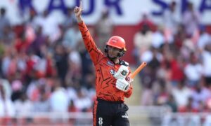 এদিন মাত্র ৪১ বলে ১০২ রান করেছেন এই ব্যাটার। ইনিংসটি খেলার পথে নয়টি চার ও আটটি ছক্কা একাই হাঁকিয়েছেন তিনি – অর্থাৎ ৮৪ রান করেছেন স্রেফ ১৭ বলে। তাঁর এমন টর্নেডো ব্যাটিংয়েই অবিশ্বাস্য সংগ্রহ দাঁড় করানোর ভিত পেয়ে গিয়েছে সানরাইজার্স হায়দ্রাবাদ।