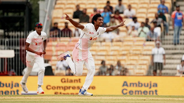 টেস্টে দেশের সেরা পেসার যে তিনিই সেটা আবারও প্রমাণ হয়ে গেল। আগের দিনে তাও বাংলাদেশ বোলিংয়ে উইকেট পাচ্ছিল, দ্বিতীয় দিন সকালে সেটাও হচ্ছিল না একদম। কাইল ভেরেইন ও উইয়ান মুল্ডারের ১১৯ রানের জুটি ভাঙতে পারলেন হাসান মাহমুদ। পরের বলেই বোল্ড করেন কেশব মহারাজকে। সেখানে কিছুটা হলেও ম্যাচে নিজেদের আশা বাঁচিয়ে রাখে বাংলাদেশ। ম্যাচে বাঁচতে হলে যে, ফাস্ট বোলার দরকার, এই সাধারণ বোধটা কবে হবে বাংলাদেশের?