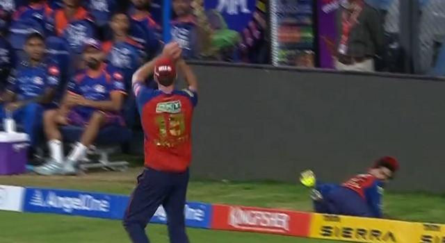 হার্দিকের মারা শট যখন নিশ্চিত ছয়ের গন্তব্যের দিকে ছুটে যাচ্ছিল ঠিক সেসময় বাউন্ডারির একেবারে কিনারায় দাঁড়িয়ে ছিলেন শ্রেয়াস আইয়ার। বলটি দ্রুত গতিতে সীমানার দিকে আসতেই শিকারী চোখ দিয়ে মেপে নিলেন নিজের শিকারের অবস্থান।  এক মুহূর্ত দেরি না করে পেছনের দিকে নিজের শরীরটাকে ছুড়ে দিলেন।  যেন বাতাসের সাথে মিশিয়ে নিলেন নিজেকে।