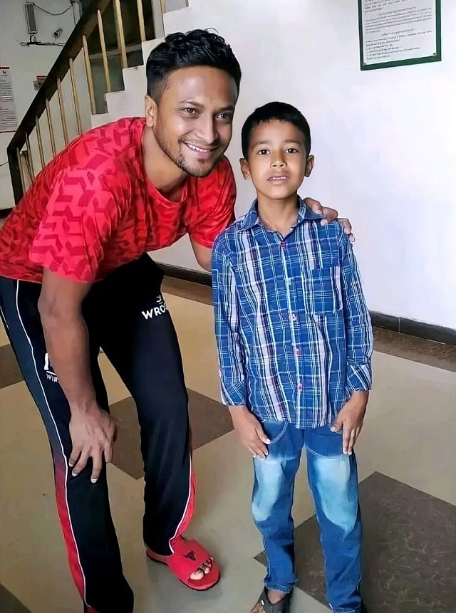 সাকিব আল হাসান নাঈমকে কাছে টেনে নিয়েছেন। ছোট্ট সাকিবকে আগামীকাল জার্সি ও জুতা কিনে দিবেন বলেও কথা দিয়েছেন। এই মুহূর্তগুলো, এই ছবিগুলোই তো বলে দেয় দেশের ক্রিকেটে সাকিব আল হাসান কী এক অনন্য উচ্চতায় থাকেন।